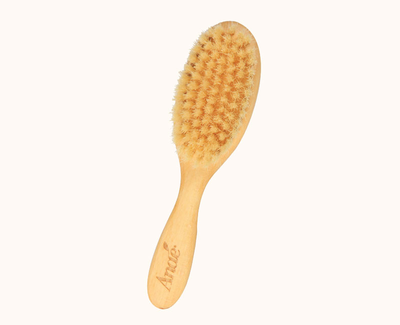 Escova ideal para escovar o cabelo delicado das crianças. Escova de madeira com cerdas suaves ao toque.