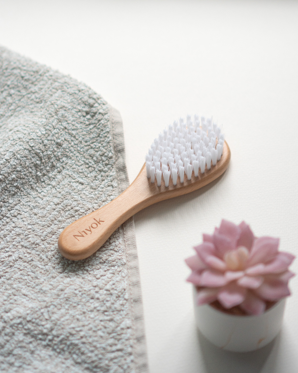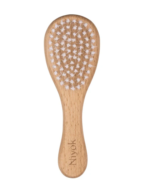 Fabricada em madeira de faia sustentável, a escova para bebés é robusta e duradoura, e não contém produtos químicos nocivos. As cerdas são feitas de uma mistura de óleo de rícino/nylon, o que significa menos plástico à base de petróleo e um toque agradavelmente fofo. A madeira macia é confortável de segurar e garante um manuseamento fácil durante os cuidados diários com o bebé. As cerdas macias desembaraçam suavemente o cabelo fino sem o puxar ou arrancar e proporcionam uma massagem suave no couro cabeludo, promovendo a circulação sanguínea e favorecendo o crescimento saudável do cabelo.