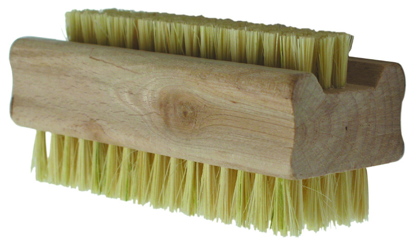 Escova para unhas com cabo de madeira e cerdas naturais.