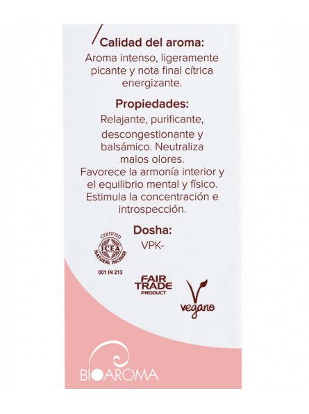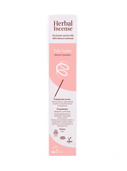 Incenso natural que permite desfrutar da aromaterapia natural sem perfumes sintéticos ou tóxicos. O incenso é feito à mão seguindo o tradicional método de masala (masala method), que cria um incenso leve e limpo que irá criar muito pouco fumo e espalha lentamente um aroma suave. O incenso natural, da BioAroma, oferece um triplo benefício ao combinar o prazer sensorial, o cuidado da natureza e condições de trabalho justas. Este incenso natural combina os princípios da aromaterapia e da medicina ayurvédica.