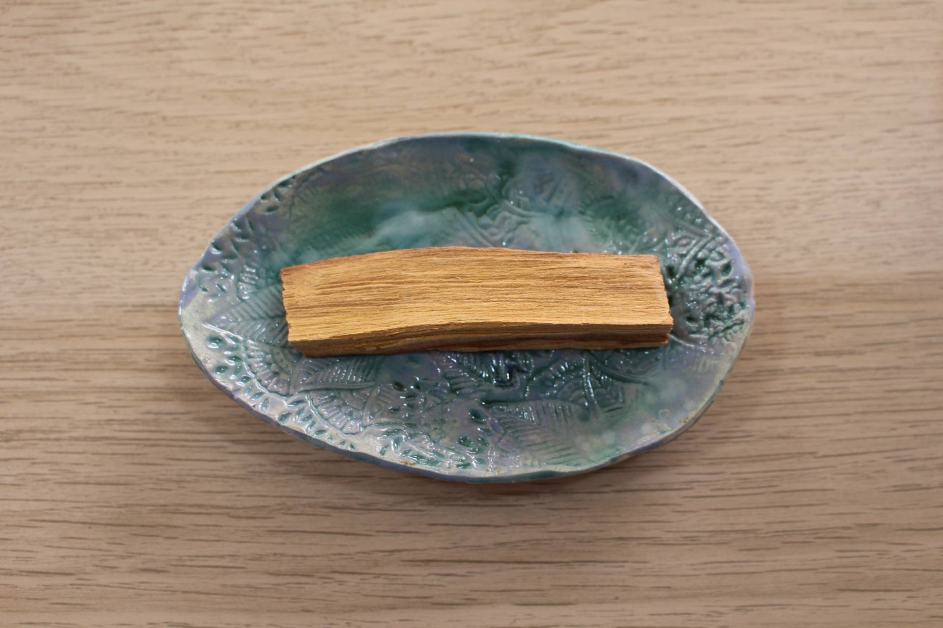 Como usar: Inclinar o pedaço de pau santo a 45º para acender melhor sem queimar os dedos. Acender uma ponta com fósforos ou isqueiro. Deixar a chama arder por 30 segundos a 1 minuto. Agitar o pedaço para apagar a chama e ativar as brasas. Colocar o mesmo num suporte de pau santo. O pedaço de Palo Santo não queima de uma só vez, deve ser reacendido 1-2 vezes, ou seja 3-6 minutos de combustão, para obter uma fragrância suficientemente forte e duradoura. Um pedaço pode ser acendido cerca de 30 vezes.