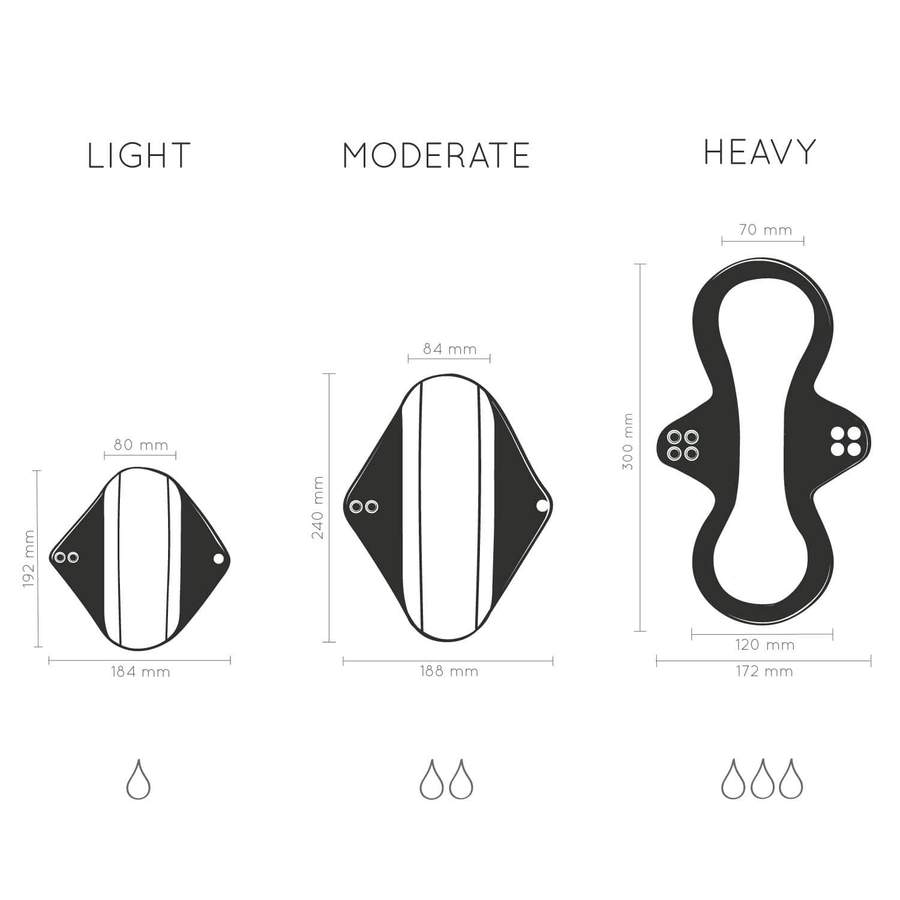 Todos os pensos higiénicos reutilizáveis também têm fechos nas asas para garantir que fiquem no lugar com toda a segurança.