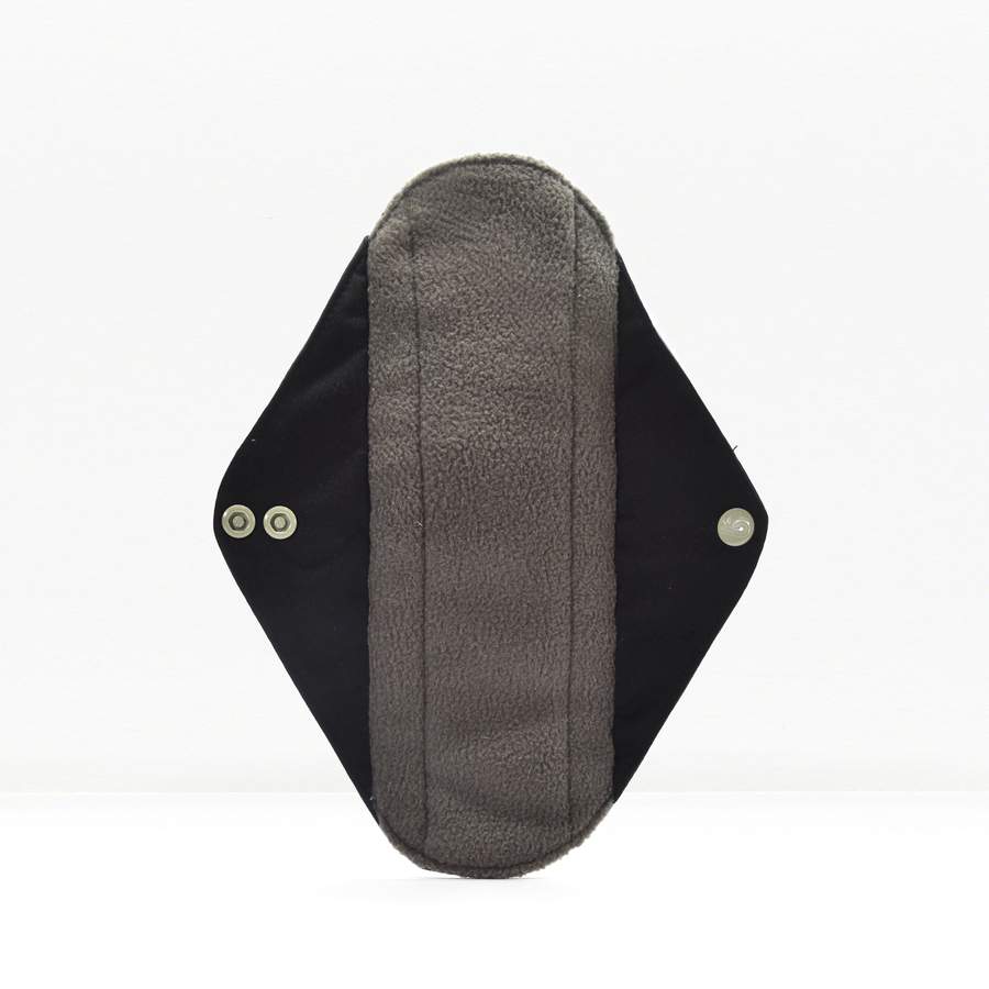 Todos os pensos menstruais reutilizáveis são pretos e feitos de três materiais: