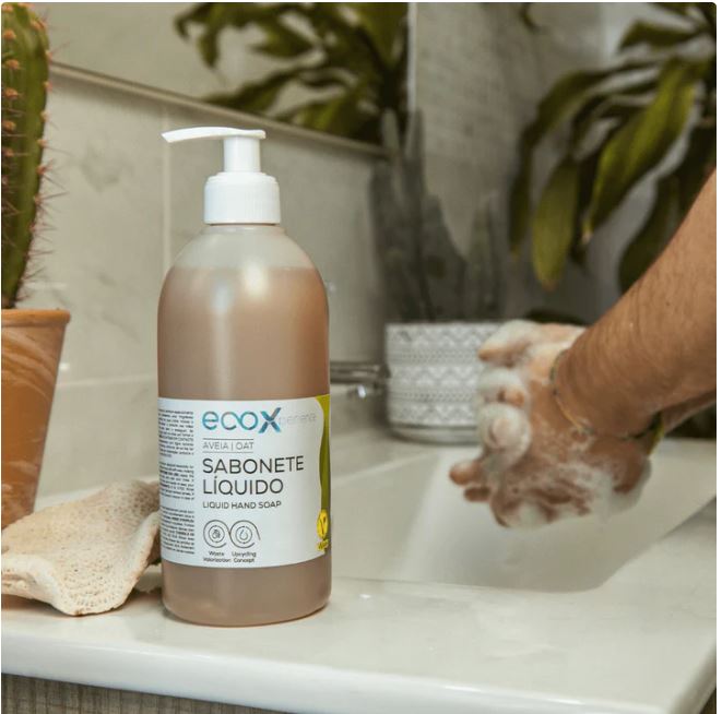 É feito a partir do óleo alimentar usado e, ao ser um sabão de base natural e ter o glicerol na sua composição, deixa as mãos bastante suaves e hidratadas.