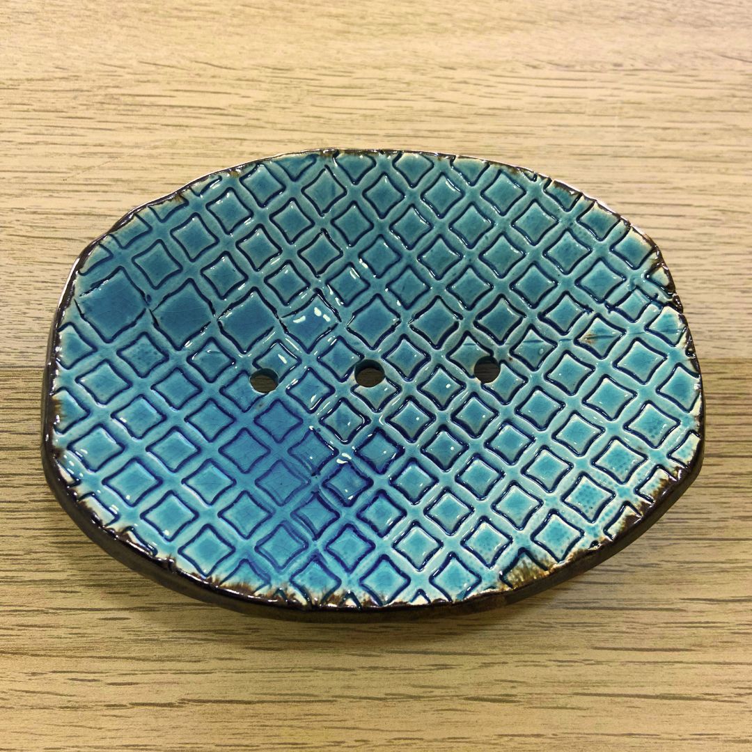Saboneteira cerâmica azul 3